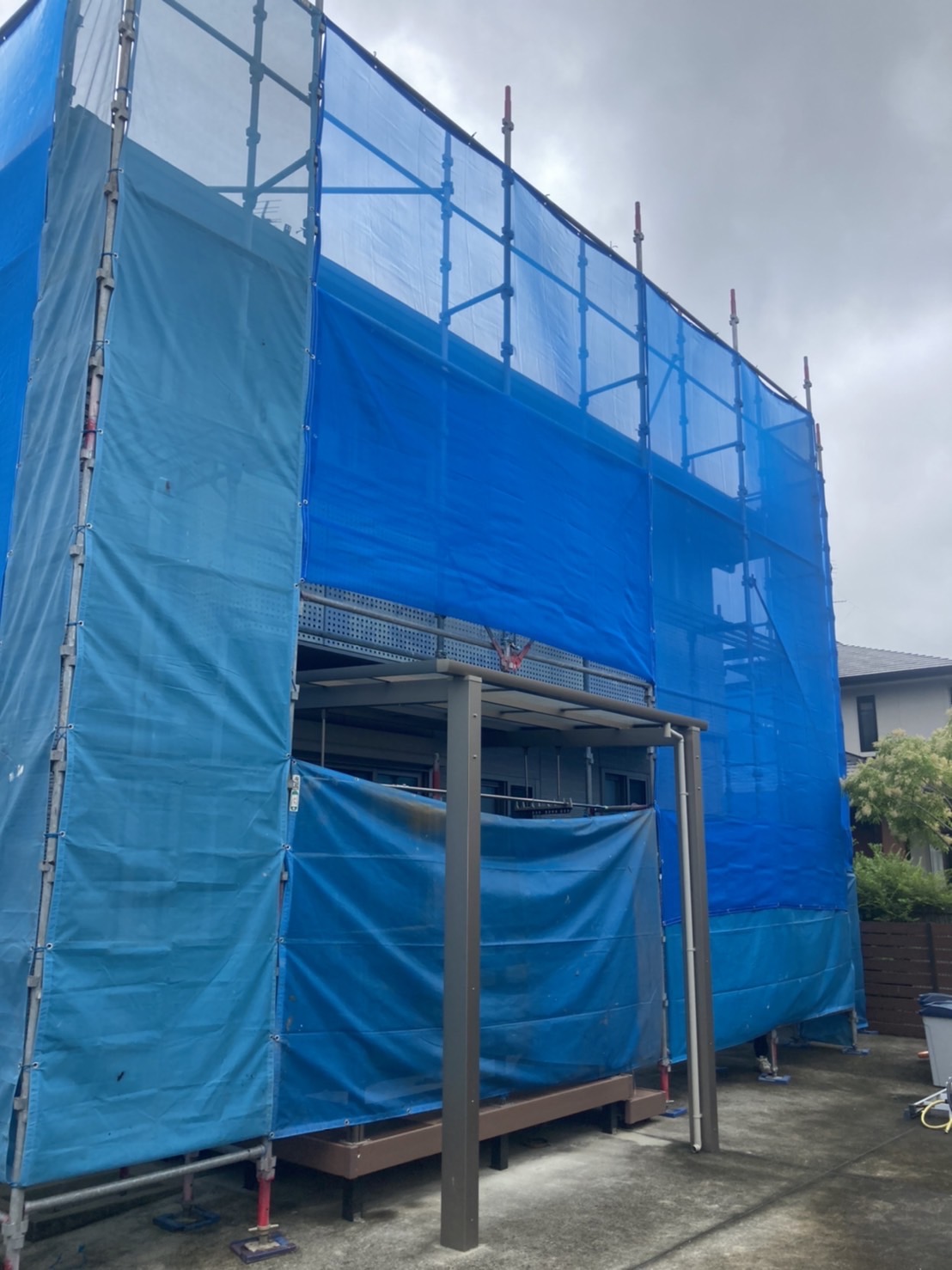 佐賀市久保田町にて塗装用足場の組立工事を行いました。