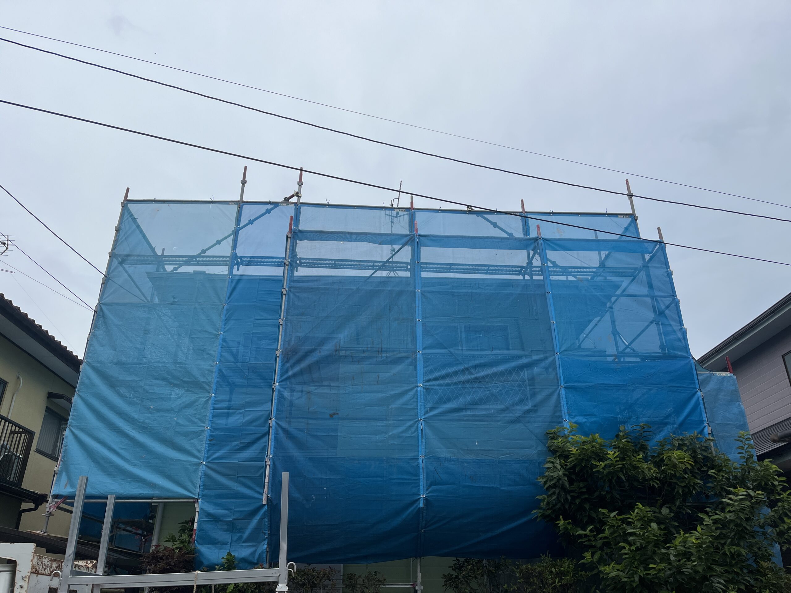 福岡市早良区にて塗装用足場の組立工事を行いました。
