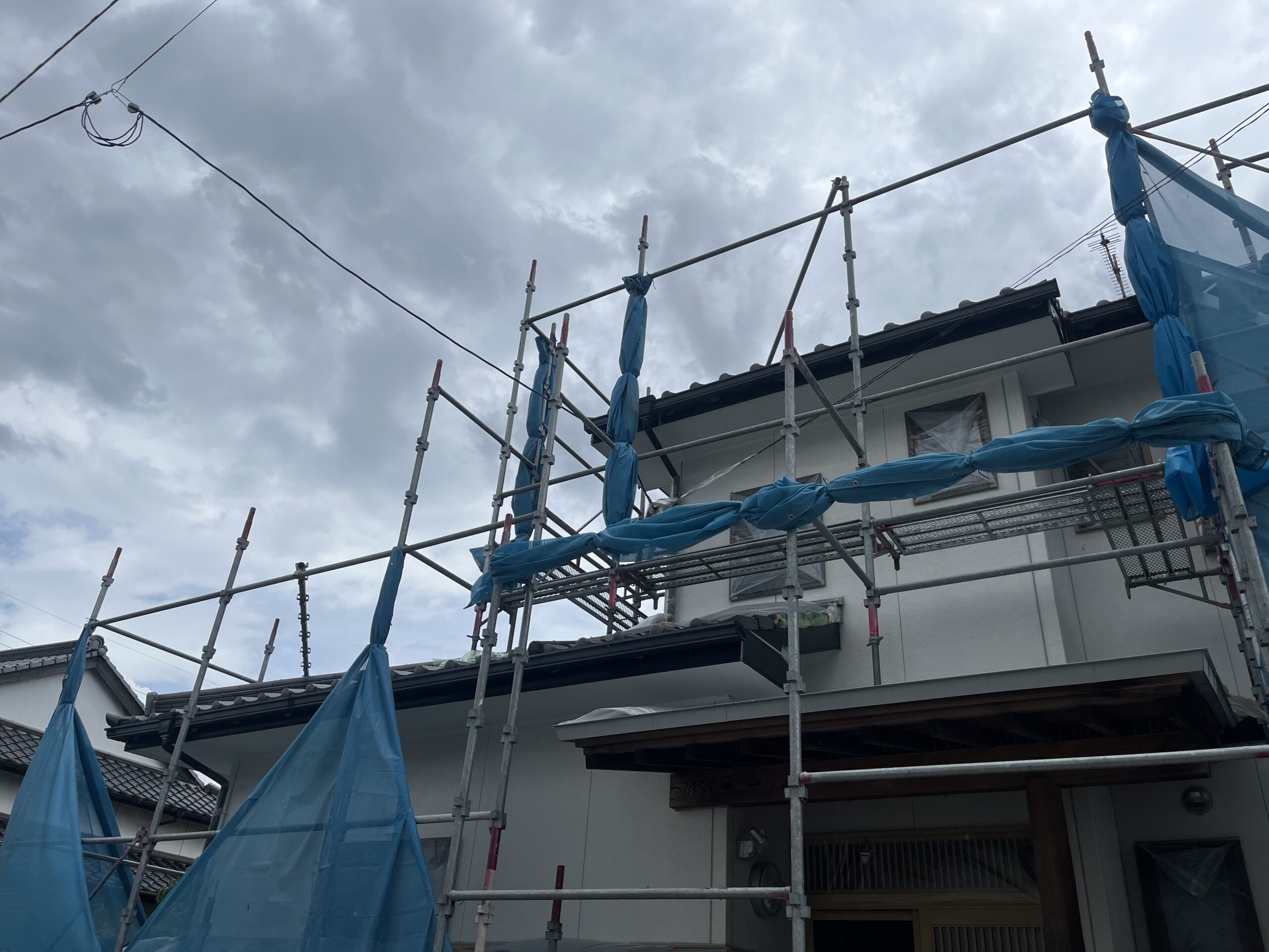 佐賀市鍋島町にて塗装用足場の組立工事を行いました。