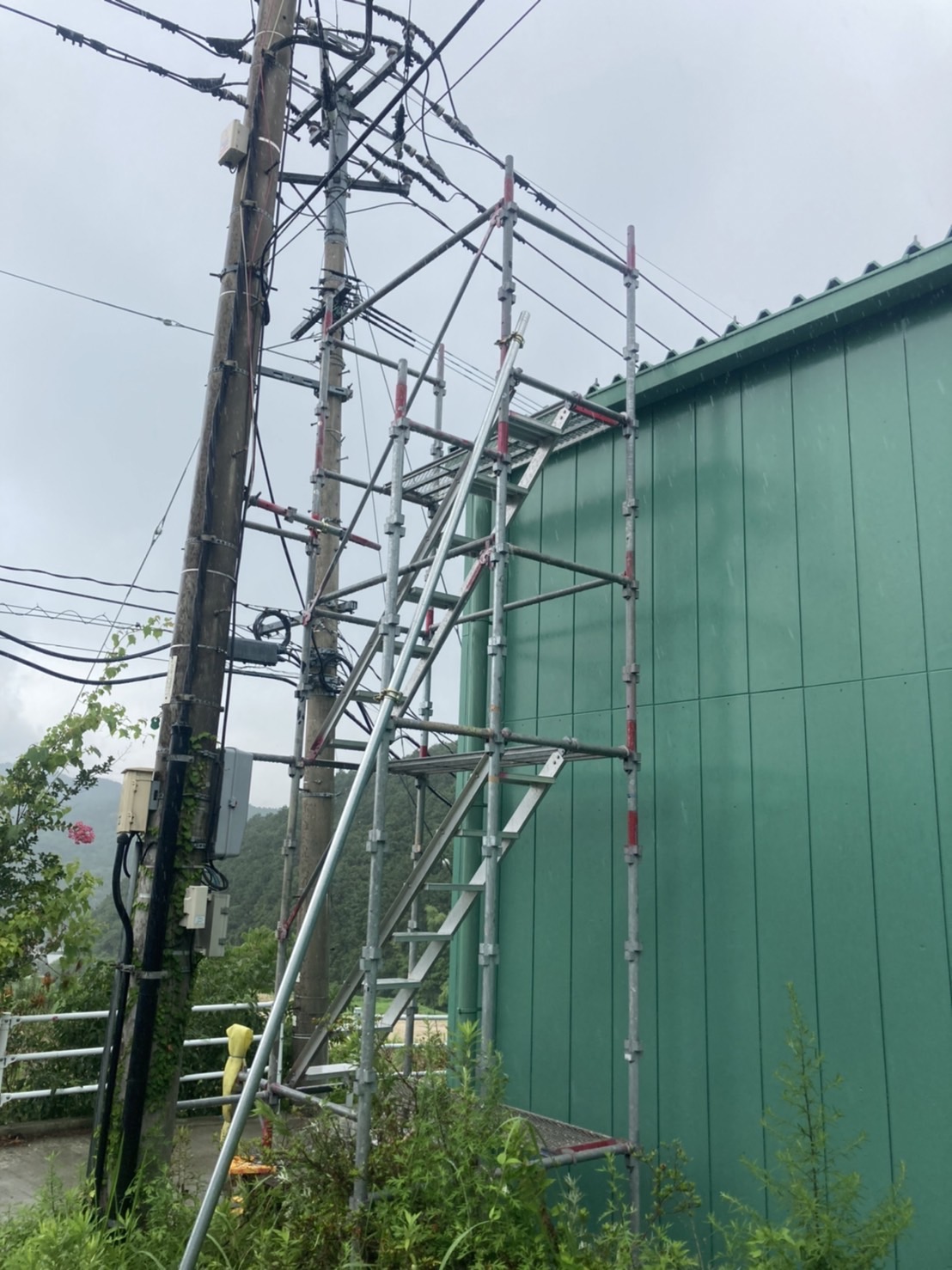 久留米市三潴町にて塗装用足場の組立工事を行いました。